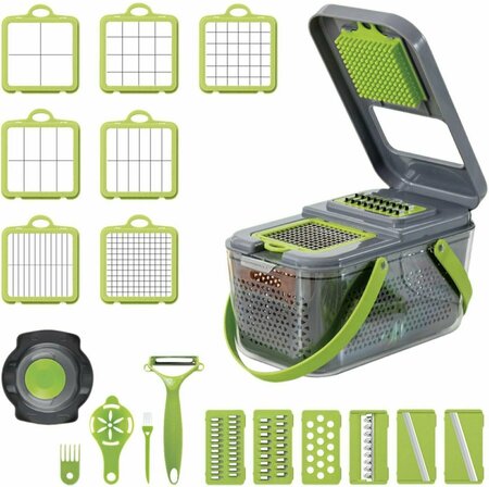 Овощерезка многофункциональная ручная 22 в 1 - это незаменимый помощник на кухне, который значительно облегчит процесс приготовления пищи. В комплекте с теркой идут 22 насадки для шинковки и нарезки овощей, фруктов, сыра, чеснока и зелени. Овощерезка оснащена безопасным держателем для продуктов при нарезке, который сохраняет ваши пальцы в безопасности. Нескользящее основание и плавающее лезвие обеспечивают стабильность и точность нарезки. Корпус овощерезки выполнен из качественного ABS пластика, а режущая часть - из нержавеющей стали с лазерной заточкой. Это гарантирует долгий срок службы и сохранение остроты лезвий. В комплекте с овощерезкой идет специальный контейнер с резиновыми накладками, который не позволит нарезанным продуктам скользить по рабочей поверхности. Овощерезка подходит для мытья в посудомоечной машине, что значительно упрощает уход за ней. Овощерезка многофункциональная ручная 22 в 1 станет отличным подарком для тех, кто любит готовить и экспериментировать на кухне.