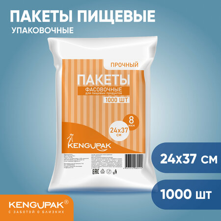 Пакет фасовочный, пищевой, для хранения продуктов KENGUPAK прочный 24*37см, 8 мкм, 1000 шт, полиэтиленовый