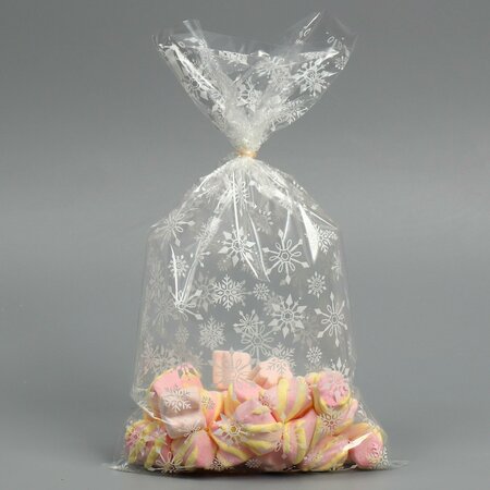 Пакет подарочный пропиленовый «Снежинки», 19 х 34 см 50шт.