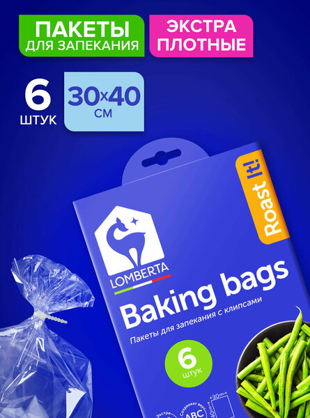 Пакеты для запекания Lomberta: удобство и надежность в приготовлении пищи Пакеты для запекания Lomberta размером 30x40 см предназначены для приготовления разнообразных блюд из мяса, рыбы, овощей и других продуктов в собственном соку. Благодаря увеличенной плотности материала (14 мкм) и удобным жаростойким клипсам, пакеты обеспечивают надежную герметичность и предотвращают разрывы. Пакеты изготовлены из качественного материала – ПЭТ (полиэтилентерефталат), который отличается прочностью и долговечностью. Бесцветный прозрачный цвет пакетов позволяет наблюдать за процессом приготовления пищи, не нарушая при этом герметичность упаковки. В комплекте с пакетами идут 6 удобных и надежных клипс, которые позволяют использовать их не только в духовке, но и в микроволновой печи (СВЧ). Это значительно расширяет возможности приготовления разнообразных блюд и позволяет экономить время на подготовку продуктов. Пакеты для запекания Lomberta упакованы в одну упаковку, что обеспечивает удобство хранения продукта. Произведенные в России, эти пакеты для запекания Lomberta станут незаменимым помощником на вашей кухне и помогут приготовить вкусные и полезные блюда.