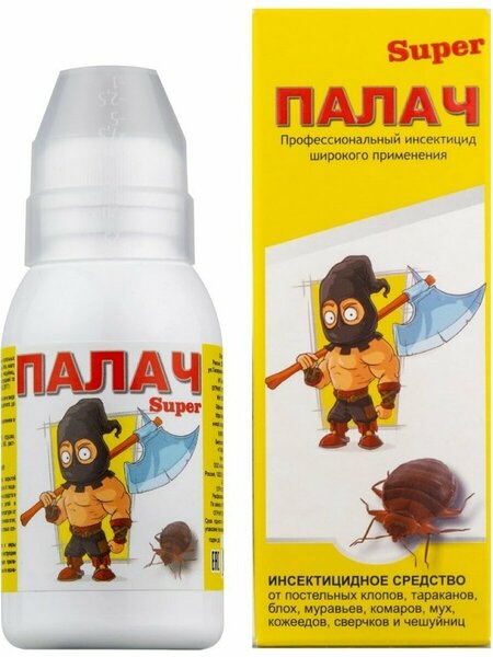 Средство от насекомых "Палач Super" - это мощный концентрат, который эффективно борется с постельными клопами, тараканами, блохами, муравьями и другими насекомыми. Объем составляет 100 мл, что делает его удобным для использования в небольших помещениях. Средство "Палач Super" обеспечивает быстрое и надежное уничтожение насекомых. Для уничтожения постельных клопов, блох, муравьев и тараканов необходимо развести 18 мл средства на 1 л воды. Обработку следует проводить с помощью опрыскивателя, тщательно обрабатывая все места обитания и перемещения насекомых. После обработки помещения необходимо закрыть его на 3-4 часа, а затем провести влажную уборку. В течение недели вы можете заметить, как клопы выходят из своих укрытий. Для достижения наилучшего результата рекомендуется повторить обработку через неделю. В комплекте с концентратом идет подробная инструкция по применению, которая поможет вам правильно использовать средство и обеспечить максимальную эффективности.