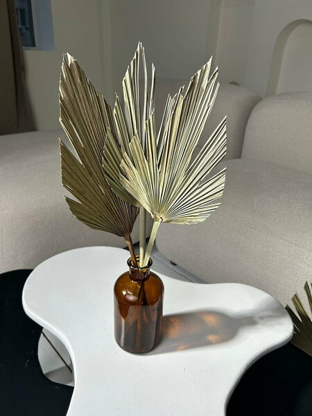 Набор из 3-х пальмовых листьев в форме пики - это экзотический и стильный декор для вашего дома. Каждый пальмовый лист уникален и неповторим, что придает ему особую ценность. ЦВЕТ КАЖДОГО ЛИСТА МОЖЕТ БЫТЬ ВСЕХ ОТТЕНКОВ ОТ ЗЕЛЕНОГО ДО КОРИЧНЕВОГО! Размеры листьев варьируются от 23 до 26 см в высоту и от 17 до 22 см в ширину. Ножка листа имеет длину от 16 до 20 см. Листья пальмы не требуют особого ухода и сохраняют свою свежесть и красоту на протяжении длительного времени. Достаточно раз в месяц сдувать с них пыль феном на небольшой скорости. Пальмовые листья могут использоваться как самостоятельный элемент декора, так и в сочетании с другими сухоцветами или цветами. Пальмовые листья могут стать отличным подарком на новоселье, день рождения или любой другой праздник. Украшайте свой дом вместе с нами!