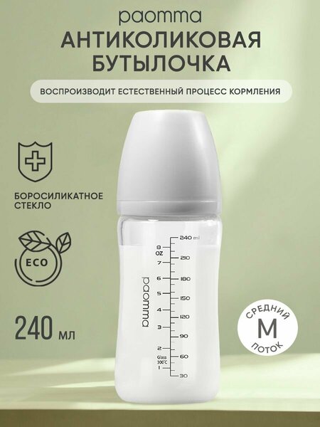 Стеклянная бутылочка для кормления 0 от бренда Paomma — это идеальное сочетание надежности, экологичности и удобства. Благодаря высококачественному стеклу она обеспечивает безопасное хранение молока или смеси, сохраняя их свежесть. Paomma бутылочка изготовлена из высококачественного термостойкого боросиликатного стекла, устойчивого к перепадам температур и механическим воздействиям. Материал не содержит вредных веществ (не содержит бисфенол А) и полностью безопасен для здоровья малыша. Стеклянная бутылочка для кормления 6 + отличается соской из медицинского силикона, который имитирует форму материнского соска. Это обеспечивает комфортное кормление и правильный захват для новорожденного. Встроенная вентиляционная система предотвращает заглатывание воздуха, снижая риск колик и дискомфорта у малыша. Бутылочка для новорожденных 0 стекло обладает корпусом, на котором нанесена точная мерная шкала, которая позволяет легко отмерить нужное количество молока или смеси. Бутылочка для кормления отличается эргономичным дизайном. Бутылка для кормления стеклянная выдерживает высокие температуры и подходит для стерилизации, кипячения и мытья в посудомоечной машине. Бутылочка для новорожденных - прекрасный выбор для мам. Выберите стеклянную бутылочку Paomma — залог безопасности и комфорта вашего малыша. Подарите своему ребенку только самое лучшее!