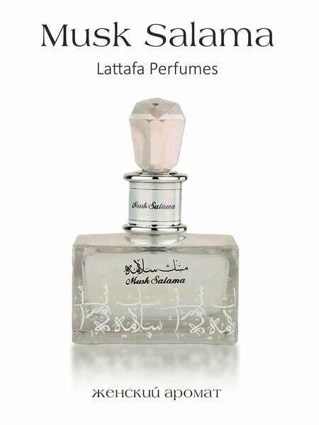 Musk Salama — красивый, яркий и очень природный по звучанию восточно-фруктовый парфюм с мягкими мускусными оттенками, выпущенный в 2017 году известным арабским парфюмерным брендом Lattafa. Как и все парфюмы этого бренда, аромат отличается глубиной, яркостью и шлейфовостью звучания. Красивый флакон с тонким флористическим орнаментом и серебристым колпачком, увенчанным кристаллом, идеально отражает особый стиль заключенного в нем парфюма. Композиция встречает ярким коктейлем сладких фруктовых нот, душистым каскадом проливающихся в мягкое и волнующее сердце парфюма, наполненное мерцающей нежностью белого мускуса. Легкой, призрачной дымкой он окутывает владельца парфюма, создавая вокруг него почти мистическую ароматическую ауру. Постепенно аромат меняется и в финальном аккорде дарит мягкое тепло древесных нот, запах идеально выделанной кожи и чуть смолистые оттенки янтаря.