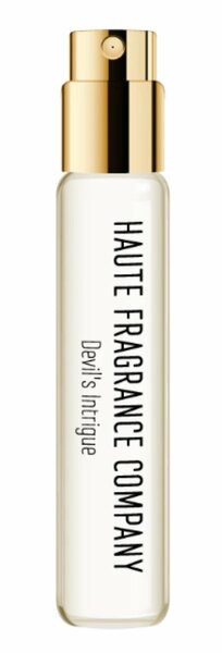Devil's Intrigue — тонкий, волнующий и интригующий женский цветочно-древесный аромат окутанный легкой мускусной дымкой. Парфюм выпущен в 2018 году французским нишевым парфюмерным брендом Haute Fragrance Company в рамках его «Азиатской коллекции». Округлый угольно-черный дизайнерский флакон, украшенный тематическим цветным принтом, подчеркивает оригинальность заключенного в нем парфюма. Созданный парфюмером Бенуа Бержиа аромат в верхнем аккорде дарит неожиданное сочетание сладкого османтуса и шелковисто-пряных оттенков белого чая. В сердце композиции пьянящий пряно-медовый аромат апельсинового цвета звучит на подложке из древесно-сливочных оттенков сандала. Тогда как финальный аккорд отзывается теплом древесных нот, бархатисто-пряными оттенками кашемирового дерева и легкой сладостью ванили.