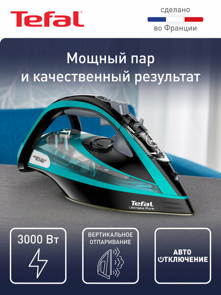 Паровой утюг Tefal Ultimate Pure FV9837E0, с защитой от накипи, автоотключением, 3000 Вт, Франция