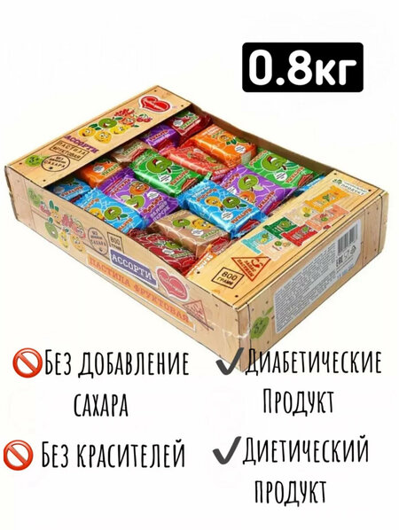 Состав Состав: яблочное пюре, сорбат калия (0.01%), натуральные ароматизаторы в зависимости от вкуса. Пастилушка - настоящая пастила из свежих яблок, изготовленная без добавления сахара! Вкусная и полезная! Производство пастилы, изготавливаемой компанией Пастилушка, находится в с. Кахун Кабардино-Балкарии. В качестве сырья для производства продукта используются яблоки, выращенные в самой республике, считающейся одной из самых экологически чистых районов нашей страны. Свежие яблоки местных сортов перерабатывают в пюре, далее фруктовую массу выкладывают тонким слоем, высушивают в печах, режут на пластинки и фасуют в конфеты. Пастила ТМ "Пастилушка" является диетическим и диабетическим продуктом, что подтверждено свидетельствами о государственной регистрации, так же она рекомендована для детей школьного и дошкольного возраста старше 3-х лет. С оригиналами документов Вы можете ознакомится в карточке товара (Листайте ленту фотографий). Так же наша компания внедрила на своем производстве систему стандартов хассп. Система хассп является эффективным орудием управления, которое используется для защиты предприятия (торговой марки) при продвижении на рынке пищевых продуктов и защите производственных процессов от биологических (микробиологических), химических, физических и других рисков загрязнения. Простыми словами, программа хассп - это задокументированные в форме регламентов и инструкций для персонала международные правила, которые необходимо соблюдать, вести записи в соответствующих журналах и соблюдение которых позволит обеспечить безопасность продукции для потребителей. В упаковке весом 0,8 кг - 40+/-5 конфет, вес одной конфеты 18-20 гр. Упаковка наполняется автоматическим укладчиком точно по весу. Возможно неравномерное наполнение вкусами, либо отсутствие одного из них. В соответствии с принципами работы нашей компании, мы не храним на складах готовый продукт. Пастила изготавливается партиями под каждый отдельный заказ. Такая система позволяет избежать случаев, когда к потребителю попадает несвежий продукт. Дата заявленная на упаковке, соответствует дате изготовления товара. Обычно покупателям доставляют товар с остаточным сроком годности не менее 11 месяцев, при сроке хранения 12 месяцев. Пастилушка востребована и любима за натуральность, отсутствие искусственных красителей в составе, удобную упаковку и узнаваемый вкус детства!