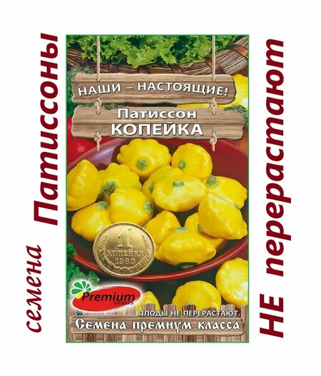 Патиссон Копейка (1 упаковка-7 шт семян ) Супер патиссон-корнишон! При консервировании и мариновании по вкусу превосходит огурцы! Новый ультраскороспелый (от всходов до созревания 35-37дней), кустовой сорт корнишонного типа. Плоды жёлто-оранжевого цвета, массой 15-30г (самый оптимальный размер для цельноплодного консервирования), не трескаются и не перерастают( в течение 10-15 дней). Мякоть плотная, нежная и хрустящая, с повышенным содержанием витаминов. Плоды используются для цельноплодного консервирования и маринования, как отдельно, так и совместно с огурцами и помидорами, а так же для домашней кулинарии (тушения, жарки), заморозки.
