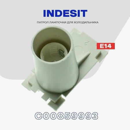 Патрон лампочки для внутреннего освещения холодильной камеры холодильника Indesit C00859993. Комплектуется в моделях холодильников серии: B, BA, BE, BH, BI и т. д. Характеристики: Рабочее напряжение: 220 В. Сила тока: 2 А. Тип цоколя: Е14. Коды аналоги: C00859993, 859993.