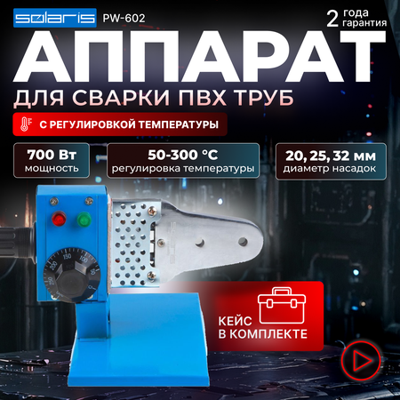 Паяльник для полипропиленовых труб и насадки, Аппарат для сварки пластиковых труб, Solaris PW-602 (600 Вт, 3 насадки: 20, 25, 32 мм) (SOLARIS) (PW-602)