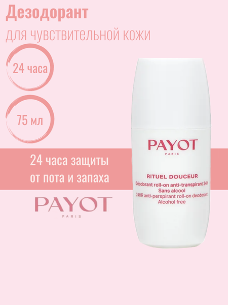 Клинические испытания подтвердили, что дезодорант без спирта бренда PAYOT устраняет неприятный запах пота в течение 12 часов. Средство упаковано в удобный флакон с роликовым дозатором, обеспечивающим экономичный расход дезодоранта.