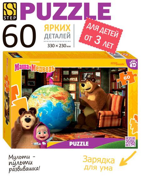Пазл для детей состоит из 60 прочных элементов с красочными иллюстрациями любимых персонажей мультфильмов Маша и Медведь. Он подойдет для мальчиков и девочек. Пазлы для детей 3 лет 4 лет. Также подойдут пазлы для детей 5 лет. Детали пазла весьма крупные. Они отлично подойдут для развития мелкой моторики, внимания, памяти. Игра вызовет восторг у ребенка. Ему предстоит собрать яркую и красочную картинку, используя все детали. Главная героиня мультфильма никогда не сидит на месте. Судя по всему и на этот раз она что-то задумала. Скорее всего - отправиться в какое-нибудь путешествие. В этом ей поможет верный друг Медведь. Главной задачей при производстве пазлов является здоровье и безопасность наших клиентов, поэтому делая пазлы, мы используем экологичные и безвредные материалы. Игра головоломка научит находить нужный элемент из множества похожих и располагать его в нужном месте. Логическая игра развивает пространственное мышление. Такую компактную, удобную игру можно взять в дорогу и в путешествие, выбрать как подарок на день рождения для сына и для дочки. Пазл отлично подходит для совместных игр с родителями. Вы можете вместе с ребенком собирать картинку, обсуждая персонажей и события мультфильма. Это прекрасная возможность провести вместе время и создать теплые воспоминания. Вы сможете использовать игру как напольную мозаику, сложный напольный пазл. Игровой набор станет прекрасным подарком для ваших внуков и внучек. Подарите своему ребенку увлекательную и развивающую игру, которая займет его надолго и подарит вам свободное время. Пазл обладает антистресс эффектом: снижает напряжение и эмоциональное перевозбуждение ребенка. Детская игра от Step Puzzle - это прекрасный выбор для развития, обучения и досуга.