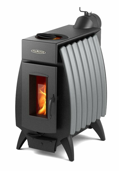 - Совершенные теплотехнические характеристики получены при помощи компьютерного математического моделирования - Стильный дизайн позволяет устанавливать печь в самом современном интерьере - Чугунная конфорка с двумя кольцами разных диаметров позволяет готовить пищу на открытом огне в посуде разного размера, загружать топливо сверху и прочищать от сажи верхнюю часть печи - Нержавеющий теплообменник (в модификациях с литерой «Б») позволяет нагревать воду для бытовых нужд - Высокоэффективные щелевые конвекторы защищают от жёсткого инфракрасного излучения и преобразуют 77% полезного тепла в мягкие конвекционные потоки - Вместительный топливник позволяет заполнить печь максимальным количеством дров для длительного непрерывного горения - Большая вертикально-ориентированная дверца топливника позволяет удобно наполнять печь дровами до самого верха - Тонкая регулировка интенсивности горения позволяет бесступенчато выбирать любой режим работы печи - Универсальный выход дымовой тру