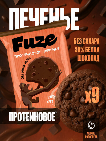 Протеиновое печенье Fuze с высоким содержанием белка и вкусом шоколада/миндаля/кокоса/арахиса/мяты и белого шоколада/апельсина с шоколадом - отличный выбор для людей, которые стремятся поддерживать себя и своих близких в форме. Фитнес печенье Fuze – это вкусный и полезный перекус, который удобно взять с собой или дать ребенку в школу). Возможность быстрым, удобным и вкусным способом утолить надолго голод и получить необходимую порцию белка, необходимую для поддержания мышечной массы или при восстановлении после тренировки! Наши пп сладости без сахара, никакой муки и ГМО. Содержат клетчатку, что благотворно влияет на пищеварение. И оно действительно очень вкусное. В линейке спортивного печенья FUZE 6 вкусов: • Мята-белый шоколад • Апельсин-шоколад • Арахис • Кокос • Шоколад • Миндаль А еще это белковое печенье может превращаться в горячий мягкий кекс (маффин)! Достаточно нагреть его в микроволновой печи в течении 15 секунд. Печенье без сахара Fuze прекрасно сбалансировано по содержанию жиров, белков и углеводов, не относится к группе продуктов с высоким гликемическим индексом, что важно для людей, ограничивающих себя в употреблении сахара. В состав пп печенья Fuze входит 3 вида белка: концентрат сывороточного белка/whey, пшеничный белок, яичный белок. Каждое белковое печенье упаковано в индивидуальную упаковку. В боксе – 9 печений по 40 г. Не отказывайте себе в удовольствии попробовать что-то новое и разнообразить свою спортивную белковую еду! Производству протеинового печенья в России исполняется уже более 10 лет, и мы первые выпустили протеиновое печенье в России! А 10 лет мы выпекли более 10 000 000 печений! ПП продукты – это оригинальный и необычный подарок для ваших близких и друзей. Такой подарок выручит вас на любой праздник: 23 февраля, 8 Марта, Новый год, станет прекрасным дополнением к подарку на день рождения или на 14 февраля (День святого Валентина), а также порадует ваших коллег даже без повода.