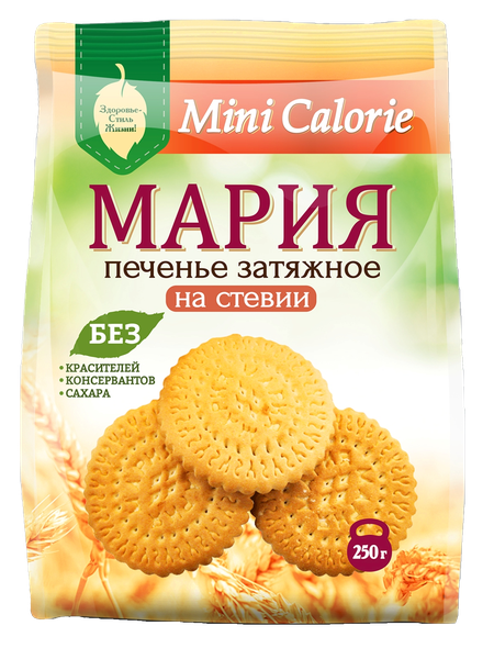 Печенье затяжное Мария - один из самых популярных видов печенья. Печенье затяжное Мария на стевии торговой марки Mini Calorie традиционный продукт с натуральным, современным и безопасным сахарозаменителем! В составе печенья затяжного Мария на стевии отсутствует сахар, фруктоза, патока или любые другие виды сахара. В составе из подслащивающих веществ только стевия. Печенье затяжное Мария на стевии не содержит химические подсластители, не содержит красители. Количество хлебных единиц в 100 г продукта: 6ХЕ.