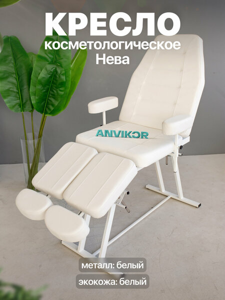 Педикюрное кресло косметологическое с регулировкой и подлокотниками экокожа Нева белый