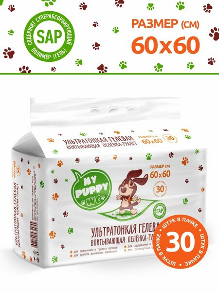 Пеленка-туалет Puppy WC выполнена из специальных прочных материалов, содержит супер-абсорбирующий полимер (SAP), превращающий жидкость в гель и блокирующий аммиачные запахи. Эффективно при использовании для щенков и мелких пород собак. My Puppy WC По-настоящему одноразовая, но при этом прочная и эффективная: надёжно защитит ваши ковры, пол и мебель, поможет в уходе за питомцем, в приучении щенков.