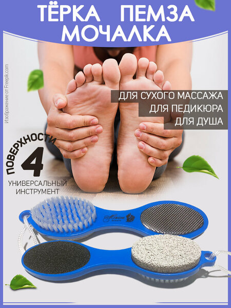 Теперь не надо покупать отдельные щетки для сухого массажа, лазерные пилки для пяток, тёрку для ног, и пемзу! Всё необходимое собрали в одной щётке! Для поддержания красоты и здоровья стоп используйте щетку для педикюра. Это многофункциональное изделие, имеющее 4 поверхности для грубой и мягкой шлифовки стоп. Приспособление можно использовать как на сухую кожу, так и на распаренную. Абразивный материал не травмирует пятки и бережно снимает слой за слоем ороговевшей кожи. Щеточка мягко удаляет загрязнения со стоп и из-под ногтей, не повреждая при этом кожу. Предупреждение: Пилка-щетка предназначена для мытья и обработки ног. Не рекомендуется маленьким детям, а также людям, страдающим кожными заболеваниями. Изготовлена: корпус из пластмассы, рабочая часть из синтетической щетины, искусственной пемзы, металла и полимерного материала с абразивным покрытием. Подарок, 23 февраля, 8 марта, день влюбленных, 14 февраля, день рождения, юбилей, маме, брату, папе, любимой.