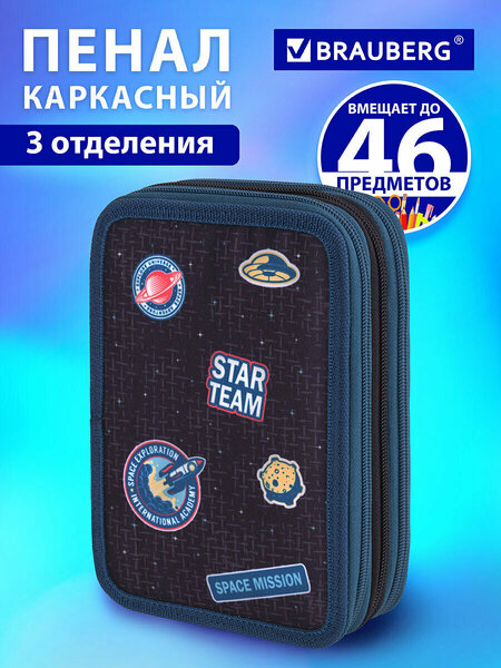 Представляем вам пенал BRAUBERG "Space mission" — идеальный выбор для школьников и подростков! Этот пенал школьный с тремя отделениями (размер 21х14 см) удобно разместится в рюкзаке или сумке, обеспечивая порядок в канцелярии. Яркий дизайн и цветная печать внутри создадут атмосферу для учебы, а прочные резинки надежно удержат все необходимые канцтовары. Пенал для девочки и пенал для мальчика выполнены из износостойкого полиэстера и плотного картона, что гарантирует защиту от повреждений. Не упустите возможность сделать учебный процесс более приятным с милой канцелярией от BRAUBERG. Надежная молния с металлическим бегунком обеспечивает легкий доступ к содержимому, а вместимость до 46 предметов позволяет организовать все нужные канцелярские принадлежности в одном месте. Выбирая пенал BRAUBERG, вы выбираете качество, которое оценят и девочки, и мальчики, а также их родители. Упакованный в ПЭТ пакет, этот школьный пенал сохранит свой товарный вид на протяжении длительного времени. Обеспечьте своему ребенку удобство и стиль в школе с BRAUBERG! Нас покупают по запросам: пенал, пенал для мальчика, пенал школьный, пенал для девочек, пенал косметичка, пенал для подростков, пеналы для школы, пенал косметичка для девочек, пенал для карандашей, пенал для ручек, пенал 2 отделения, пенал с молнией • Тип пенала: трехкамерный. • Назначение: для мальчиков. • Серия: PREMIUM TRIPLE DECKER. • Дизайн: Space mission. • Застежка: молния. • Количество отделений: 3. • Материал: полиэстер. • Основной цвет: бирюзовый. • Длина: 21 см. • Ширина: 14 см. • Упаковка: прозрачный пакет с европодвесом. • Артикул производителя: 270729.