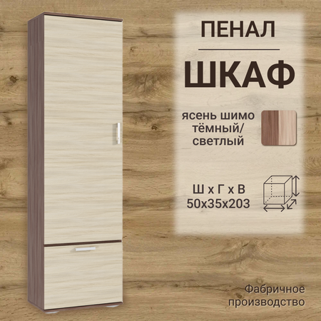 Шкаф пенал с полками, ширина 50 см, ясень шимо, 50х35х203 см