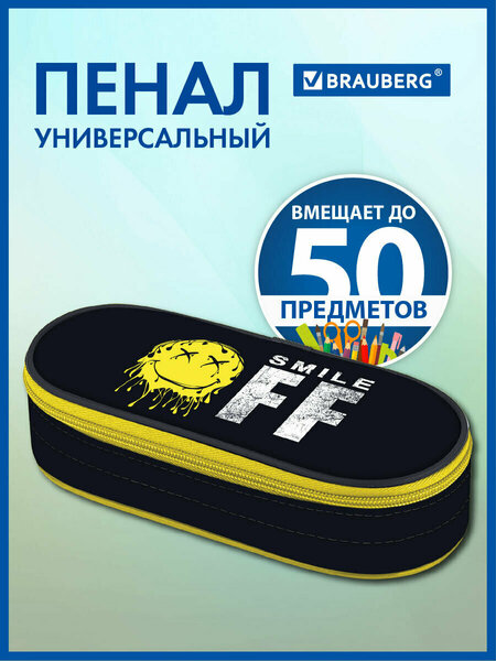 Пенал-футляр BRAUBERG — идеальный выбор для хранения школьной канцелярии. Этот стильный пенал школьный с ярким дизайном "Smile OFF" идеально подойдет как для девочки, так и для мальчика. Его вместительное отделение позволяет разместить до 50 канцелярских предметов стандартного размера, что делает его незаменимым помощником в школе. Компактные размеры 22x9x5 см позволяют легко разместить пенал в рюкзаке, не занимая много места. Изготовленный из прочного полиэстера, этот пенал сочетает в себе надежность и стиль. Органайзер внутри поможет поддерживать порядок среди школьной канцелярии, а застежка-молния с металлическим бегунком обеспечивает легкий доступ к содержимому. Пенал также может служить универсальной сумочкой-косметичкой для подростков, что добавляет его функциональности. Выберите пенал BRAUBERG и добавьте яркие акценты в повседневную жизнь ваших детей, ведь милая канцелярия всегда под рукой! • Тип товара: пенал-футляр. • Серия: CASE. • Дизайн: Smile Off. • Застежка: молния. • Назначение: для мальчиков. • Количество отделений: 1. • Материал: полиэстер. • Базовый цвет: желтый/черный. • Длина: 22 см. • Ширина: 9 см. • Упаковка: индивидуальная с европодвесом. • Артикул производителя: 271587.