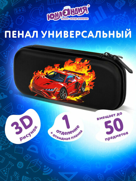 Пенал ЮНЛАНДИЯ – это идеальный выбор для вашего ребенка, который оценит стильный дизайн и функциональность. Выполненный из экологичного материала EVA с эффектом soft-touch, он не только приятен на ощупь, но и безопасен для здоровья. Этот школьный пенал вмещает до 50 канцелярских предметов, что позволяет держать все необходимые для школы вещи в одном месте. С его вместительным отделением, карманом на молнии и откидной планкой с органайзером на 4 предмета, ваш школьник всегда будет готов к занятиям. Уникальный 3D-эффект и оптимальный размер 22х10х5 см делают этот пенал привлекательным как для мальчиков, так и для девочек. Пенал прекрасно впишется в рюкзак, не занимая много места, и станет отличным подарком на выпускной в детском саду, день рождения школьнику или просто так. Сочетая красивый внешний вид и практичность, он также удовлетворяет требования подростков, станет незаменимым аксессуаром в их милой канцелярии. Не упустите возможность порадовать своего ребенка стильным и удобным школьным пеналом! • Тип пенала: пенал-футляр. • Назначение: для мальчиков. • Серия: 3D SOFT-TOUCH. • Дизайн: Fiery Road. • Застежка: молния. • Количество отделений: 1. • Материал: EVA. • Основной цвет: черный. • Количество откидных планок: 1 шт. • Длина: 22 см. • Ширина: 10 см. • Упаковка: прозрачный пакет с европодвесом. • Артикул производителя: 273187.