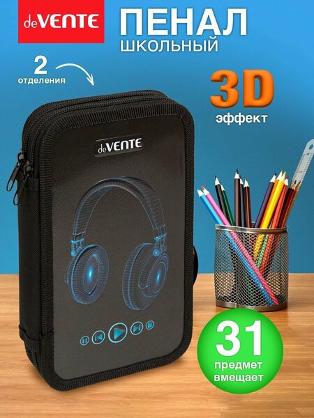 Пенал школьный deVENTE - незаменимый помощник для школы. Пенал оборудован 2-мя вместительными отделениями на надежных молниях, в которых удобно разместить все необходимые предметы, всего вмещается 31 предмет. Каждое отделение открывается на 180⁰ и обеспечивает полный доступ к канцтоварам. Больше никакого беспорядка в рюкзаке или на столе - все вещи будут аккуратно упакованы в пенале. Жесткий корпус пенала надежно защищает содержимое от повреждений и деформаций. Теперь ты можешь быть уверен, что твои карандаши, ручки и линейка будут в сохранности во время транспортировки. Пенал имеет размер 20,5x12x4 см, что делает его компактным и удобным для переноски. Длина 20,5 см гарантирует, что в пенал легко помещаются карандаш с ластиком и линейка 16 см. Теперь ты можешь легко поместить его в рюкзак или сумку, не занимая много места. Внешнее покрытие пенала выполнено из картона, ламинированного антивандальной пленкой. Покрытие с объемным тиснением, что придает пеналу эффектный и стильный вид и защищает его от внешних воздействий. Такой пенал станет не только функциональным аксессуаром, но и модным дополнением к твоему образу. Внутренняя часть пенала ламинирована, что обеспечивает дополнительную прочность и долгий срок службы. За пеналом легкий уход можно протереть влажной тряпочкой или салфеткой для удаления загрязнений снаружи и внутри. У пенала надежная молния, металлические бегунки молний, качественные резинки для принадлежностей надежно прошиты. Все это гарантирует долгий срок службы. Теперь, благодаря пеналу deVENTE ты можешь легко организовать свои учебные принадлежности, обеспечив им надежную защиту и при этом выглядеть стильно и модно. Не упусти возможность сделать свою учебу более комфортной и приятной с этим удивительным пеналом!