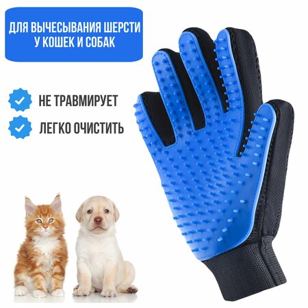 Перчатка для вычесывания шерсти животных- это идеальный инструмент для груминга и ухода за вашим любимцем в домашних условиях. Перчатка сделана специально для кошек и собак, а также для других домашних животных с мягкой шерстью. Предназначена для заботливых владельцев питомцев, которые хотят совмещать приятное с полезным. Теперь можно одновременно гладить и вычесывать своего любимца. Избавьтесь от проблем с шерстью кошек и собак, используя эту уникальную расческу для животных. Перчатка для вычесывания оборудована мягкими силиконовыми щетинами, которые деликатно, но эффективно удаляют старую шерсть. Чесалка для кошек и собак превращает уход в комфортное и приятное времяпрепровождение для вас и вашего питомца. Расческа для животных массирует кожу животного, стимулируя кровообращение, что способствует росту новой густой и шелковистой шерсти. Перчатка для вычесывания шерсти кошек обеспечивает точное и удобное использование, предусмотрена только для правой руки! На перчатке имеется боковое отверстие для легкого надевания на руку, ЭТО НЕ брак, А специальная особенность дизайна, для фиксации большого пальца! Зафиксируйте перчатку с помощью липучки-застежки и начните процесс ухода за вашим питомцем без какого-либо дискомфорта. Если вы хотите обеспечить вашему питомцу максимальный комфорт и заботу, то перчатка для вычесывания шерсти – это тот инструмент, который вам нужен. Она станет хорошим подарком для всех любителей животных. Если у вас дома живут кошки или собаки, то большую часть времени вы наверняка уделяете грумингу и уходу за своими питомцами. Уход за питомцами – это важнейшая часть их здоровья и благополучия. Поэтому очень важно выбирать правильные инструменты для ухода за шерстью животного. Перчатка для вычесывания шерсти кошек – это идеальное решение.