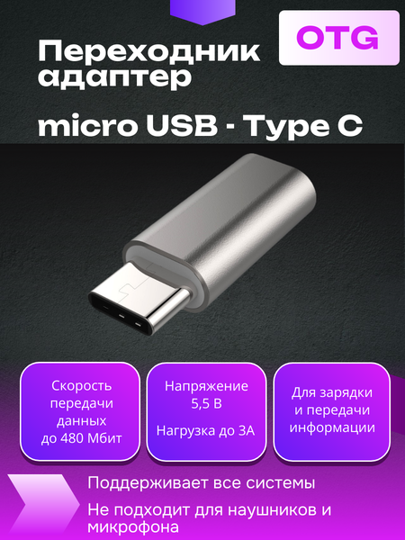 ✔️ Переходник адаптер OTG Micro USB на Type-C G-03 обеспечивает стабильное и быстрое подключение устройств благодаря максимальной силе тока 3.0 А. ✔️ Скорость передачи данных до 480 Мбит. Это позволяет передавать данные и заряжать устройства одновременно, что особенно удобно в путешествиях или на работе. Переходник адаптер OTG Micro USB на Type-C G-03 - это надежное и удобное решение для подключения устройств Apple и Android. Он обеспечивает стабильное и быстрое подключение благодаря максимальной силе тока 3.0 А и скорости передачи данных до 480 Мбит. Это позволяет передавать данные и заряжать устройства одновременно, что особенно удобно в путешествиях или на работе. Адаптер оснащен разъемами microUSB (bf) и USB 2.0 Type-C (m), что позволяет подключать различные устройства с соответствующими разъемами. Особенностью переходника является его литой дизайн, который обеспечивает прочность и долговечность. В упаковке поставляется 1 шт. переходника адаптера OTG Micro USB на Type-C G-03. Цвет товара - голубой, а материал проводника - медь+алюминий. Переходник адаптер OTG Micro USB на Type-C G-03 - это надежный и удобный инструмент для подключения устройств Apple и Android, который обеспечивает стабильное и быстрое подключение, а также возможность передачи данных и зарядки одновременно.