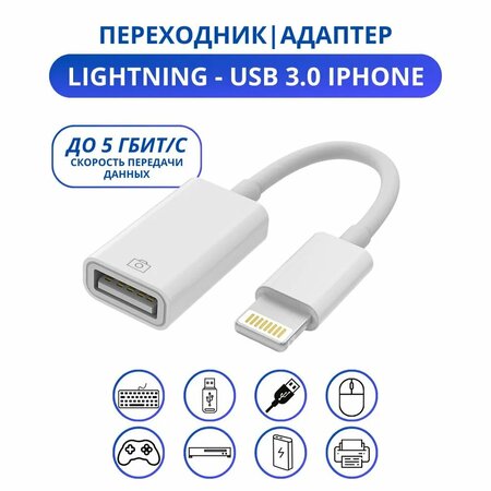 Переходник Lightning-USB 3.0 для iPhone и iPad, OTG для подключения USB-флешки, белый