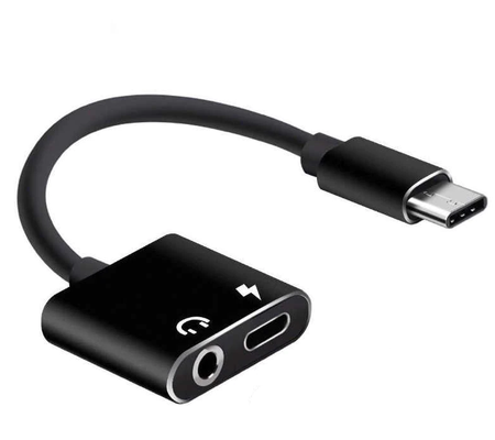 Переходник Type-C на 3,5mm Jack+зарядка Type-C, JBC017/GL022, со шнуром, поддерживает не все samsung, черный