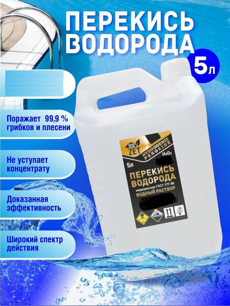 Перекись/пероксид водорода (пергидроль) – это бесцветная жидкость со слабым специфическим запахом и металлическим вкусом, неограниченно растворимая в воде, спирте и эфире. Представляет собой простейший пероксид. Область применения: Препарат является очень востребованным в быту и в промышленности. Применяется для: для очистки воды в бассейне и аквапарках, профилактики загрязнения; очистки сточных и промышленных вод; производства обеззараживающих, дезинфицирующих и отбеливающих средств; отбеливания в текстильной и целлюлозно-бумажной отраслях; для дезинфекции поверхностей в помещениях (пол, стены и т. д.); для обеззараживания изделий из различных материалов; дезинфекция мебели, поверхностей аппаратов, медицинских приборов, оборудования с лакокрасочным, гальваническим или полимерным покрытием; обеззараживания белья, посуды столовой и лабораторной; для дезинфекции уборочного материала, санитарного транспорта. И многое другое. Рекомендации по безопасности Следует надевать резиновые перчатки, защитные очки и рабочую одежду при дозировании препарата; Хранить в недоступном для детей месте; Никогда не смешивать с другими химикатами; Не хранить рядом с горючими материалами; При попадании в глаза промыть их большим количеством воды, обратиться к врачу; ПРИMЕHEНИЕ 1. Нe заливать в ледяную воду! (если Вы наливаете воду из скважины, то ocтaвьте вoду нa 1-2 дня для прогрева, затем только производите обработку). И выше 31 градуса не рекомендуется применять, охладите воду. 2. Нужно ли менять воду в бассейне? Воду менять не нужно. 3. Использовать перчатки (при попадании на кожу вызывает временный ожог, который пройдет через 2-3 часа, если это 37%. 60% категорически нельзя допускать попадания на кожу). 4. Лить по кругу бассейна, равномерно распределив по периметру, налив в отдельную ёмкость. 5. Очистить бассейн после обработки (на утро включить фильтр и собрать осадок пылесосом и в обед уже купаться!) 6. Как часто надо обрабатывать бассейн перекисью? –при первых проявлениях развития водорослей (запах стоялой воды, слизь на поверхности и стенках, потемнение или позеленение). Обычно составляет в жаркую погоду 3 недели, в обычную погоду 4-5 недель, и больше, зависит от множества факторов. Как работает перекись? - За 12-16 часов после добавления перекись водорода распадается на кислород и воду, и уже не опасна. Пока вода насыщена кислородом бактерии в ней не живут. 7. При присутствии в воде хлорсодержащих таблеток или хлора использовать перекись не рекомендуем, т. к. после налива вода будет очень мутной (2 окислителя конфликтуют между собой). Если хлор содержится в воде нужно подождать после его использования 5-7 дней, далее уже пользоваться перекисью водорода. Рекомендуем пользоваться только перекисью водорода для очистки воды и только в отдельных случаях применять другие виды химии (очень плохая вода). 8. польза ИЛИ вред. Через 12-16 часов перекись распадается на активный кислород и воду, и не несëт никакого вреда человеку! Наоборот, отмечено, что кожа становится приятнее на ощупь. 9. Срок годности. Каждые пол года перекись теряет 1.5%. Годовалую перекись лить по расчету 1л на 1м3 воды. Хранить в темном месте. 10. Если Ваш бассейн оборудован насосом рециркуляции, рекомендуем каждые 2 нед. проводить осмотр фильтра, менять песок раз в год. ❗️Для лучшего эффекта , полезна поддер