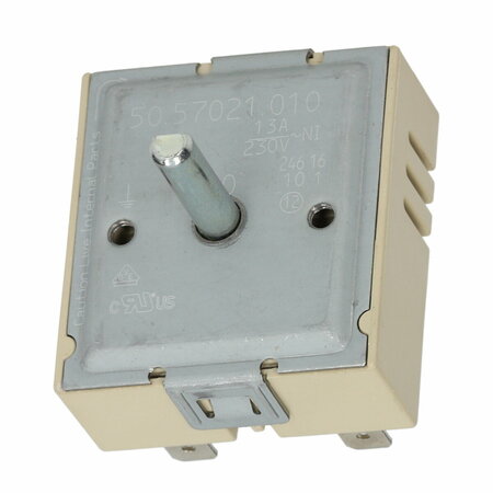 Переключатель мощности конфорки однозонный (стеклокерамика). Белый (без расширения) EGO 50.57021.010. Длина корпуса: 50,2 мм. Ширина корпуса: 44,7 мм. Высота корпуса: 22 мм. Длина вала: 23,1 мм. Длина контактов: 10 мм. Информация на изделии: 50.57021.010. COK350UN, 037056, 163900005, 267230, 377880, 3150788234, 481927328279, 50281418009, 481281718144, COK356UN.
