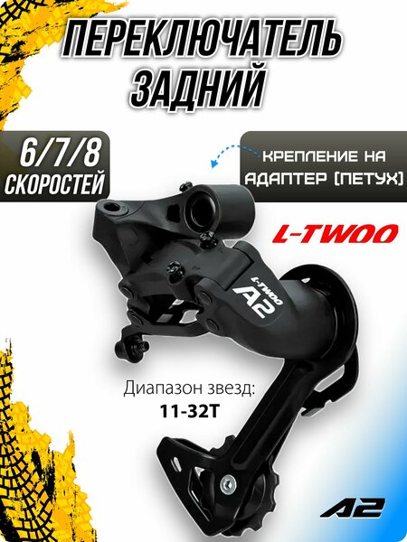 Задний переключатель скоростей для велосипеда – это важная деталь, которая обеспечивает плавное и точное переключение передач. Этот спортивный аксессуар подходит для установки на скоростные велосипеды, улучшая их функциональность и надежность. Крепление выполнено с учетом всех особенностей конструкции велотехники, что гарантирует простую установку и долговечность использования. Задний переключатель скоростей L-TWOO A2 на 6/7/8 скоростей, крепление на адаптер (петух), средняя лапка GS. Разработан для четкой работы на трансмиссиях от 6 до 8 скоростей. Совместим с Shimano. Прямая подводка троса и минимальное количество подвижных деталей, обеспечивают четкое переключение. Корпус выполнен из композитного материала, натяжитель цепи - сталь. Комплектуется средней лапкой (75 мм). Крепление на адаптер (петух). Подходит для кассет на 11-32 зубьев. Вес: 250 гр.