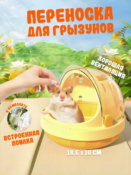 Переноска для средних и мелких грызунов с поилкой, цвет желтый