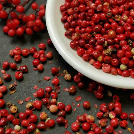 Перец Розовый горошек Премиум! Обладает пряным сладковатым вкусом с фруктово-древесными нотками и имеет легкую жгучесть. Перец добавит самому простому блюду невероятный изысканный вкус и аромат. Самое распространенное применение, конечно же в кулинарии разных стран и народов. Розовый перчик можно употребляют не только в пищу, но и в косметологии, парфюмерии и медицине при некоторых заболеваниях, так как он в себе сочетает большое количество витамина С, улучшает работу пищеварительной системы, снимает воспаления, благотворно влияет на нервную систему. Разотрите несколько горошин перца, добавьте в заправку и дайте настояться в течение получаса, чтобы аромат пряности полностью раскрылся. Несколько целых горошин добавьте в салат для украшения. Данная пряность богата микроэлементами и витаминами: аскорбиновая кислота, натрий, марганец, железо, фосфор, натрий, кальций и калий, витамины групп В, РР, Н, Е.
