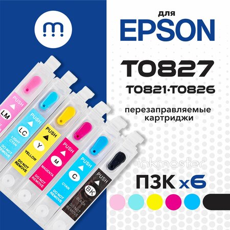 Перезаправляемые картриджи T0821-T0826 для Epson Stylus Photo T50 T59 и др (БЕЗ ЧЕРНИЛ) 6 цветов с авто-чипами Inkmaster