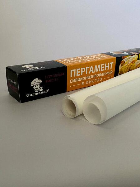 Независимо от того, являетесь ли вы профессиональным кондитером или домашним кулинаром, наш силиконизированный пергамент бренда Gurmanoff станет верным помощником для вас. Более двадцати лет мы производим этот сертифицированный продукт и гарантируем честное качество! С нашей силиконизированной пергаментной бумагой для выпечки Gurmanoff вы сэкономите ценное время, а кулинарные процессы будут просты. Это антипригарная плотная бумага в листах шириной 38 см, длиной 42 см, плотностью 39гр/м2, 15 листов. Торты и пицца, хлеб и куличи, пироги и пастила, кексы и печенье, мясо и курица, рыба и овощи-выпекайте и запекайте невероятные блюда! Силиконовая бумага Gurmanoff неприменно пригодится на каждой кухне для самых разнообразных кулинарных форм. Кухонный инвентарь останется чистым. Готовьте пищу в духовке и микроволновке, на сковороде и в мультиварке, на гриле или на пару. Благодаря антипригарному эффекту двустороннего пергамента с силиконовым покрытием, вам не придется волноваться о прилипании и пригорании пищи. Бумага для запекания устойчива к жирам и влаге, имеет высокую прочность и термостойкость до 220 С. Пищевой силикон нанесен с двух сторон бумажки для многоразового использования. Перед применением нашего пергамента с силиконом вам не нужно смазывать лист жиром. Снижайте калорийность блюд с пользой для здоровья! Смело применяйте этот безопасный и биоразлагаемый товар на своей кухне. Оцените высокое качество и многофункциональность такой хозяйственной принадлежности! Пекарская бумага Gurmanoff удобна для хранения и замораживания продуктов. Это полезное кухонное приспособление пригодится хозяйкам как бумага упаковочная для обертывания бутербродов, при оформлении декора и красивой сервировки. Благодарим вас за внимание к нашему магазину! Здесь всегда широкий выбор, акционные товары и скидки. Вы можете сделать покупку для себя или выбрать товар в подарок близким. С уважением, российский производитель лига-пак