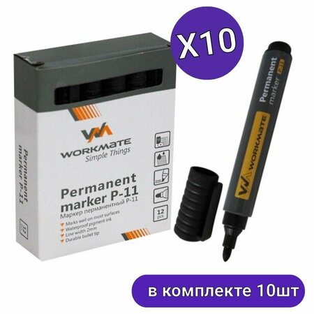 Перманентный маркер WORKMATE p-11, чёрный, пулевидный, 2,5-3,5 мм - 10шт