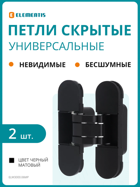 Универсальные скрытые петли для левых и правых дверей. Бесшумные и плавные в работе. Невидимые с внешней стороны, что позволяет их использовать в различных дизайнерских решениях. Максимальный вес на 2 петли 40 кг. Позволяет открывать дверь на 180 градусов. Легко регулируется в 3 плоскостях с помощью 1 шестигранного ключа 3 мм, при этом не требуется демонтировать полотно двери: по высоте +2 мм, горизонтали +1,5 мм , прижиму +1 мм. Глубина врезки в дверную коробку 20 мм, что исключает подрезание телескопических наличников. Устанавливается по центру в дверное полотно толщиной 40-44 мм. В комплекте с пластиковыми декоративными накладками и крепежными винтами.