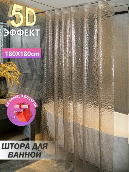 Занавеска для ванной комнаты из высококачественного материала PEVA с красивым рисунком «Гусиный камень» и медными кольцами. Занавеска изготовлена из материала PEVA (90GSM), который обеспечивает влагостойкость и легкость очистки. Прозрачные PVC кольца и стильная синяя картонная упаковка делают занавеску элегантной и практичной. В комплекте с занавеской идут 12 пластиковых крючков и 3 магнита для надежной фиксации и удобства установки. Это обеспечивает долговечность и простоту ухода за занавеской, а также позволяет легко менять ее расположение в ванной комнате. Занавеска имеет размеры 180 см в ширину и 180 см в высоту, что позволяет полностью закрыть пространство ванной комнаты. Выбирая занавеску для ванной из PEVA с 3D-эффектом и медными кольцами, вы получаете стильный и практичный аксессуар для вашей ванной комнаты, который прослужит вам долгое время.