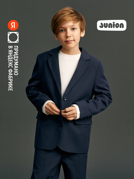 Junion Wear — это бренд одежды для детей, придуманный в Яндексе настоящими родителями. Школьный пиджак Junion Wear подходит для мальчиков и девочек от 6 до 14 лет. Сделан из смесовой костюмной ткани с добавлением вискозы и шерсти: мягкая и плотная ткань приятна на ощупь и устойчива к износу. За таким материалом легко ухаживать: он сохраняет форму после стирки. Классический однобортный пиджак с универсальной посадкой удобно носить в школу. Его можно застегнуть на пуговицы или носить расстёгнутым: на подкладке есть вышивка. Внутри — карман, в котором удобно хранить важные мелочи. У модели ровные прочные швы и удобный крой: чтобы было комфортно во время занятий, на прогулке или на празднике. Пиджак легко сочетается с другой одеждой для подростков и детей — рубашками, лонгсливами или футболками.