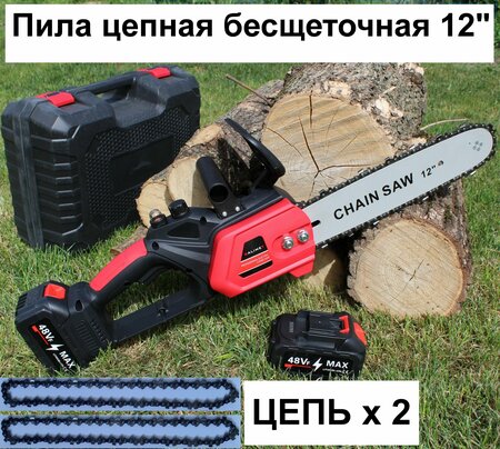 Бесщёточная цепная ручная пила - удобный помощник в хозяйстве. Цепная аккумуляторная пила компактная и легкая, что делает ее удобной для работы на даче или в саду, укомплектована двумя цепями. Беспроводная электропила станет удобным помощником в хозяйстве, так как она портативная и работает от аккумулятора. Инструмент предназначен для пиления, обрезки деревьев, сучков, веток и кустов, при работе в саду и домашнем хозяйстве. Компактные размеры и анатомическая ручка являются преимуществом. Садовая пила имеет огромное преимущество перед бензопилой, так как работает на литиевом аккумуляторе. Не требует заправки бензином, поэтому является экологически чистой. Аккумуляторная пила имеет предохранитель для предотвращения случайного запуска пилы, что исключает травмы и обеспечивает безопасность во время работы. Двигатель бесщеточный, обладает высокой мощностью и скоростью резки, защищён от перегрузок и равномерно потребляет заряд аккумулятора. Пила оснащена масляным баком, что позволяет смазывать цепь в автоматическом режиме. В комплекте имеются мощные литиевые аккумуляторы, ёмкостью 3000 мАч, что обеспечит долгую и бесперебойную работу. Зарядное устройство выдает ток 2А, что позволяет зарядить АКБ за 2 часа. Электропила имеет высококачественную направляющую и 2 цепи, глубоко закаленные, что дает высокую износостойкость. Электрическая пила - это отличный подарок мужчине на 23 февраля, новый год или день рождения. Комплектация: Цепь 12 дюймов 2 штуки, Шина 12", Электропила, Литиевый аккумулятор 2 шт, зарядное устройство, отвертка, кейс.