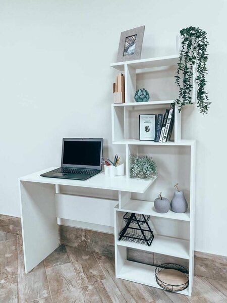Компьютерный стол New Victoria обеспечит удобство и комфорт во время решения рабочих задач или подготовки уроков. Сочетание оптимального размера, уникальной конструкции, продуманности в деталях, качественных материалов позволило создать уникальный письменный стол для повышения вашей производительности! Деревянный рабочий столик отличается своей универсальностью. Его можно поставить в детскую как школьный для ребенка подростка – как для мальчика, так и для девочки. Мебель прекрасно подойдёт как классический школьный стол из дерева для учебы детей, которые ходят в школу и делают уроки. Может применяться как стильный и модный офисный для компьютера, ноутбука, системного блока и ПК, которые применяются в вашем офисе. Устанавливаться как прямой домашний в стиле лофт для вашего рабочего кабинета. Будет уместен для установки в спальню, зал, гостиную и даже коридор – любые пространства, в которых вы трудитесь. Активно используется и как геймерский игровой стол с полочками в стиле минимализма в комнату геймера или программиста. Прекрасно применяется и как дачный для загородной дачи. Полная универсальность в применении! Модель New Victoria продумана до мельчайших деталей. Конструкция включает мощную столешницу, на которой поместится ноутбук и канцелярские принадлежности. На столешнице удобно писать, делать уроки, работать с бумагами. Материал тактильно приятный, хочется трогать снова и снова! Пространство под столешницей достаточно, поэтому будет комфортно как детям, так и взрослым руководителям. При этом достаточно компактный, поэтому прекрасно впишется в любые пространства. Сбоку установлены разноплановые открытые полки – как длинные, так и небольшие ячейки. В них удобно хранить книги, учебники, фотографии, элементы декора и интерьера, а также небольшие цветочные горшки. Такой стеллаж легко заменит шкафы, так как отличается своей прекрасной вместительностью. Мебель изготовлена из прочной ЛДСП, покрытие – ламинирование. Поставляется в разобранном виде. Почувствуйте настоящий комфорт вместе с уникальным компьютерным столом New Victoria!