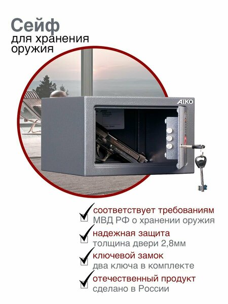 Пистолетный сейф AIKO ТТ-170 с ключевым замком, 170х260х230 мм, для хранения оружия