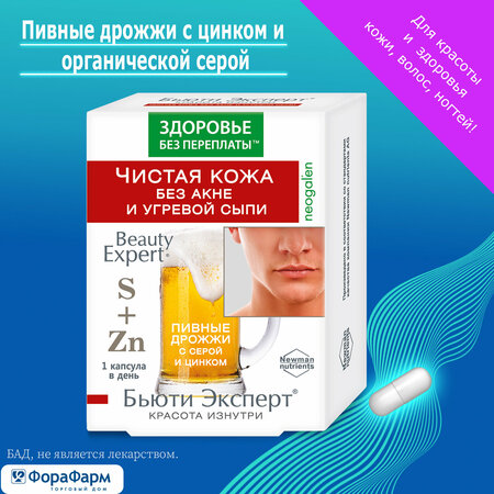 Пивные дрожжи с серой и цинком Чистая кожа без акне и угревой сыпи Бьюти Эксперт 725мг № 30 (БАД)