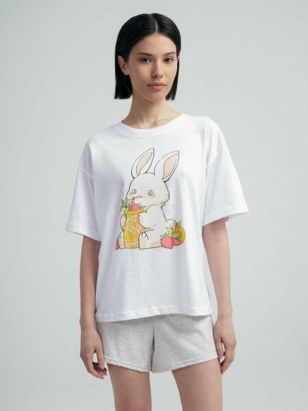 Представляем вашему вниманию женскую пижаму от популярного бренда твое, которая станет идеальным дополнением к вечернему релаксу или ночному отдыху. Этот домашний комплект сочетает в себе не только комфорт и практичность, но и оригинальный дизайн, подчеркивающий вашу индивидуальность. Пижамная футболка белого цвета с принтом в виде милого зайчика не только подарит уют во время сна, но и вызовет улыбку, добавляя легкости и игривости вашему домашнему образу. Короткие рукава и свободный крой обеспечивают максимальный комфорт и свободу движений в течение всей ночи. Изготовленная из 100% хлопка, приятна на ощупь и идеально подходят для чувствительной кожи. Серые пижамные шорты без карманов отлично дополняют футболку, создавая гармоничный и стильный комплект. Свободный крой шорт обеспечивает необходимую вентиляцию и комфорт даже в самую теплую ночь. Этот костюм для дома станет отличным выбором для женщин и подростков, а также для беременных благодаря своему свободному крою, который не стесняет движений и адаптируется к изменениям фигуры. Трикотажная ткань обеспечивает дополнительный комфорт и делает этот комплект идеальным выбором для ежедневного использования. Модный и при этом невероятно удобный комплект пижамы станет вашим любимым вариантом для сна и отдыха дома, объединяя в себе стиль, уют и качество. Прикольный дизайн и яркие цвета вносят в ваш вечерний или утренний образ нотку разнообразия и веселья, делая каждый момент особенным.