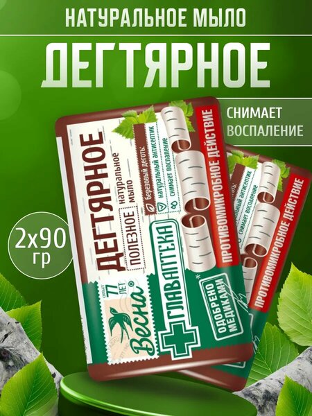 Натуральное мыло для умывания Весна 90г с березовым дегтем предназначено для кожи рук, лица, тела, для ванночек ног. В дегтярном мыле присутствует специфический запах, но он нежный и ненавязчивый. В состав мыла входит важный компонент глицерин, бережно ухаживающий за кожей. Мыло не раздражает кожу и устраняет жирный блеск, мягко очищает кожу, не сушит и не стягивает ее. Дегтярное мыло рекомендуется людям с жирной и проблемной кожей, так как оно тщательно очищает и избавляет от прыщей, обладает антибактериальными, противовоспалительными, противомикробными свойствами. После применения косметического мыла необходимо нанести увлажняющее средство. Мыло антисептик Весна убирает высыпания на спине, плечах, поэтому его можно использовать для профилактики кожных заболеваний. Также мыло подходит для мытья внутренних поверхностей обуви, для стирки белья и для домашних животных. Мы внимательно относимся к качеству товаров. Пожалуйста, не стесняйтесь оставлять отзывы! Мы реагируем на каждый отзыв.