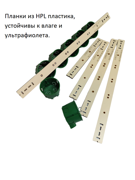 Планки для быстрого монтажа подрозетников из высококачественного HPL пластика станут незаменимым помощником в строительных и ремонтных работах. Эти компактные и удобные монтажные планки разработаны для того, чтобы сократить время установки подрозетников и обеспечить надежную фиксацию на любых поверхностях. Благодаря своей прочной структуре из HPL пластика, планки обладают высокой устойчивостью к механическим повреждениям и выдерживают значительные нагрузки, что гарантирует долговечность и надежность установленной конструкции. Комплект планок позволит выполнить монтаж подрозетников с минимальными трудозатратами и при этом обеспечит высокую точность и аккуратность выполнения работ. Эти монтажные элементы идеально подойдут для использования как профессионалами строительного дела, так и обычными домашними мастерами, стремящимися к качественному результату. Интуитивно понятная система крепления позволяет закрепить подрозетники быстро и без лишних усилий, обеспечивая надежную фиксацию и устойчивость. Модернизируйте свой ремонт с помощью этих планок, чтобы получить идеальный результат без необходимости в дополнительных адаптерах для инструмента. Выбирая комплект планок для подрозетников, вы делаете ставку на эффективность и легкость монтажа, что особенно важно при ограниченном времени на выполнение строительных или ремонтных работ. Эргономичность конструкции и простота использования делают эти монтажные планки для подрозетников незаменимым инструментом в каждом доме или на стройплощадке.