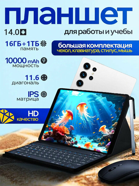 Планшет андроид S24ULTRA- это устройство, которое сочетает в себе функции планшета и ноутбука. Он оснащен 11.6-дюймовым экраном, что обеспечивает комфортное использование и позволяет с легкостью просматривать веб-страницы, читать книги и смотреть видео. Планшет работает на операционной системе Android, что дает возможность пользователю устанавливать и использовать различные приложения и игры. Одной из ключевых особенностей планшета является его объем памяти. Устройство оснащено 16 ГБ встроенной памяти и возможностью расширения до 1 ТБ с помощью карты памяти. Это позволяет хранить большое количество файлов, документов и медиаконтента. В комплекте с планшетом идут клавиатура и мышь, что делает его еще более функциональным и удобным в использовании. Вы сможете работать с документами, просматривать веб-страницы и играть в игры без необходимости подключения к компьютеру. Планшет андроид S24ULTRA- это отличный выбор для тех, кто ищет многофункциональное устройство, сочетающее в себе планшет и ноутбук.